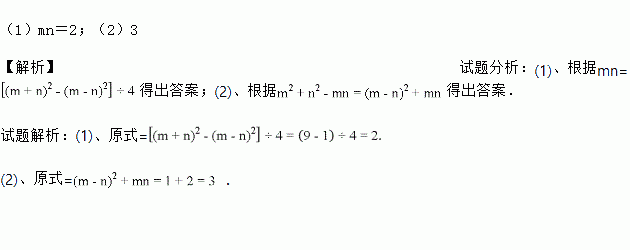 已知有理数m,n满足(m+n)2=9,(m-n)2=1.求下列各式的值.