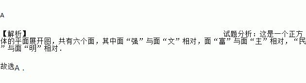 A 【解析】试题分析:这是一个正方体的平面展开图,共有六个面,其中面“强”与面“文”相对,面“富”与面“主”相对,“民”与面“明”相对. 故选A.