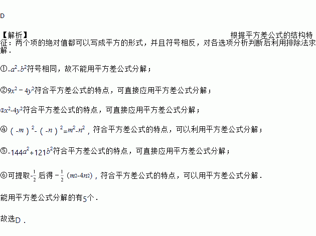 下列多项式中能用平方差公式分解的有( )
