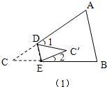 (1)如图(1)把△CDE沿DE折叠在四边形ADEB内,则求∠1+∠2的和;