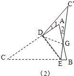 (2)如图(2)把△CDE沿DE折叠覆盖∠A,则求∠1+∠2的和;