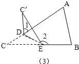 (3)如图(3)把△CDE沿DE斜向上折叠,探求∠1、∠2、∠C的关系.