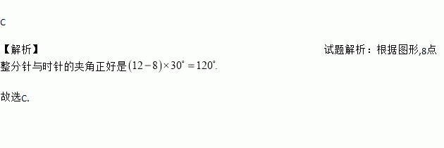 C 【解析】试题解析:根据图形,8点整分针与时针的夹角正好是 故选C.