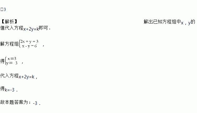 已知方程组的解满足方程x+2y=k,则k的值是__________.