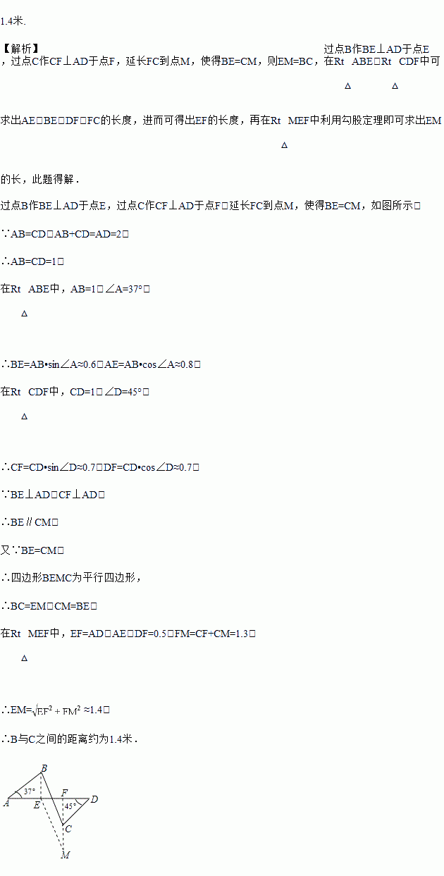 之间的距离(结果保留一位小数).(参考数据:![]()
