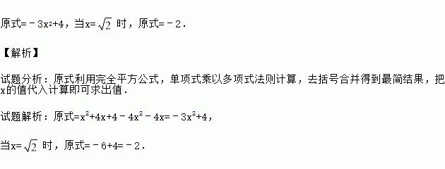 先化简,再求值:(x+2)2﹣4x(x+1),其中x=.