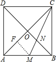 分析 过点M作MF⊥AC于点F,根据角平分线的性质可知FM=BM,再由四边形ABCD为正方形,可得出∠FAM=45°,在直角三角形中用∠FAM的正弦值即可求出FM的长度,结合边的关系即可得出结论.
