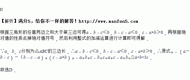 已知a,b,c分别为三角形的三边长,则化简的结果为( )
