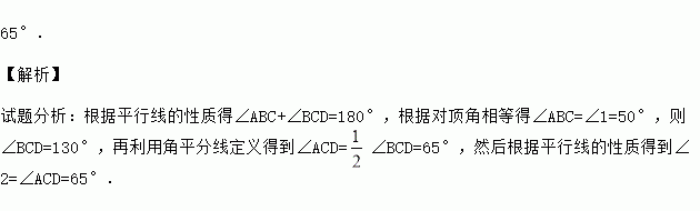 如图,直线AB∥CD,CA平分∠BCD,若∠1=50°,则∠2= .