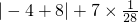 计算:|-22-(-2)3|+(-1)2007×7÷(-28).