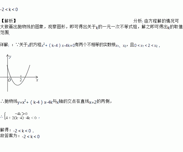 设关于x的方程有两个不相等的实数根,且,那么k的取值范围是________。