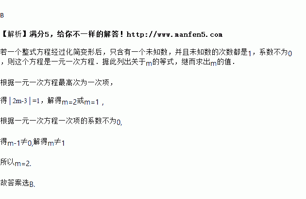 若是一元一次方程,则等于( )