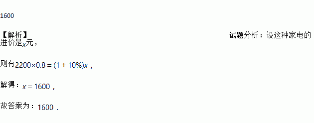 某商店对一种家电进行调价,按原价的八折出售,仍可获利10%,此商品的原价是2200元,则该家电商品的进价是_______元.