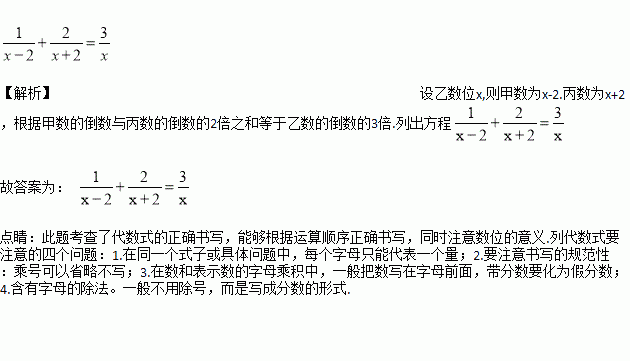 设A、B、C为三个连续的正偶数,若A的倒数与C的倒数的2倍之和等于B的倒数的3倍.设B数为,则所列方程是___________.