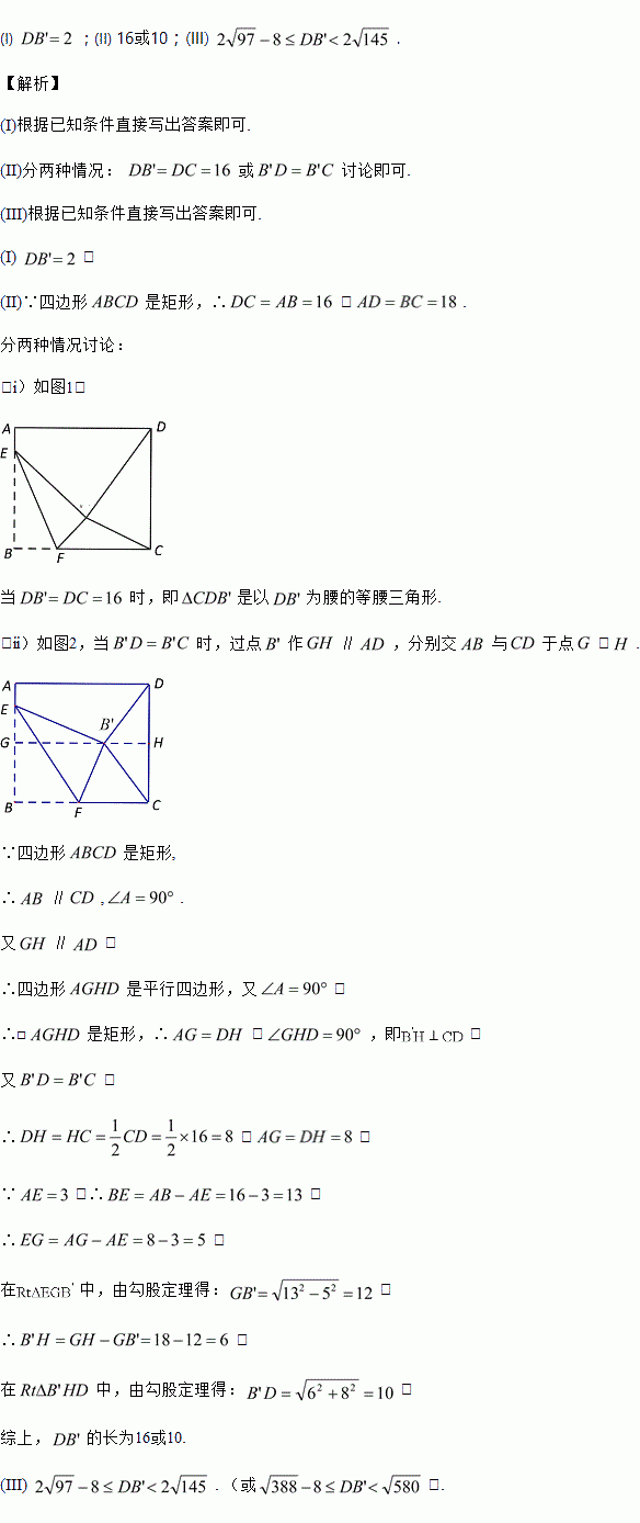 (II)若 AE?3 时, 且△CDB' 是以 DB' 为腰的等腰三角形,试求 DB' 的长;