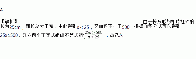 小明要制作一个长方形的相片框架,这个框架的长为25cm,面积不小于,则宽的长度xcm应满足的不等式组为