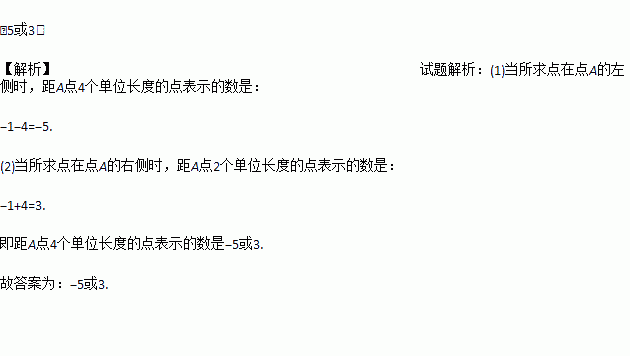 在数轴上,点A表示数﹣1,距A点4个单位长度的点表示的数是_____.