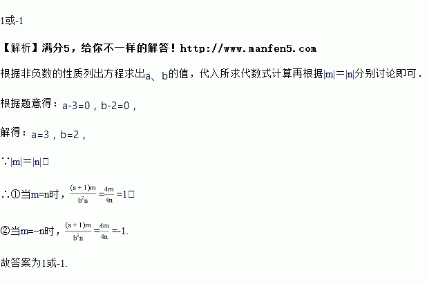 已知(a-3)2+|b-2|=0,|m|=|n|,且mn≠0,则的值为___________