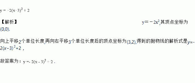 将抛物线y=-2x2向上平移2个单位长度,再向右平移3个单位长度后,得到的抛物线的解析式为_____