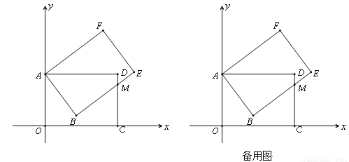 矩形AOCD绕顶点A(0,5)逆时针方向旋转,当旋转到如图所示的位置时,边BE交边CD于M,且ME=2,CM=4.