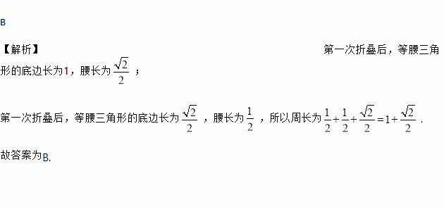 如图所示,把腰长为1的等腰直角三角形折叠两次后,得到的一个小三角形的周长是( )