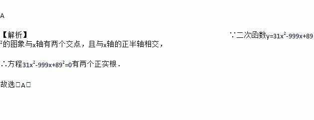 如图,将二次函数y=31x2-999x+892的图形画在坐标平面上,判断方程31x2-999x+892=0的两根,下列叙述何者正确( )