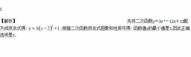 已知二次函数y=3x ²-12x+13,则函数值y的最小值是( )