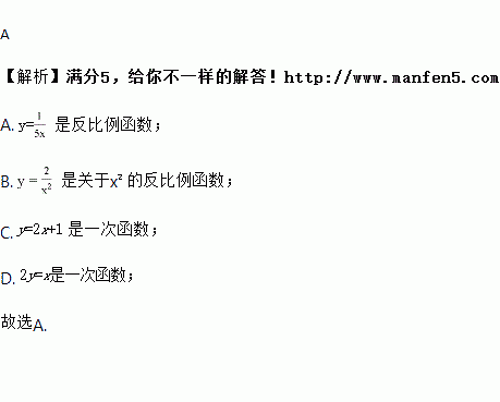 下列函数中,是反比例函数的为( )