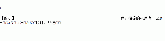 已知,如图,△ABC中,∠BAC=90°,AD⊥BC于D,则图中相等的锐角的对数有( )