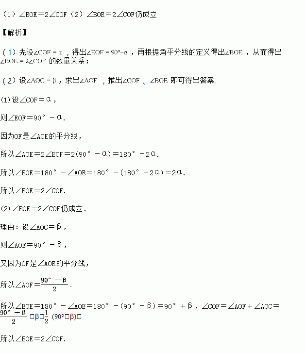(1)当点C,E,F在直线AB的同侧时(如图①所示),试说明∠BOE=2∠COF.
