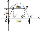 分析 由题意可知,以地面为x轴,大门左边与地面的交点为原点建立平面直角坐标系,抛物线过(0,0)、(8,0)、(1、3)、(7、3),运用待定系数法求出解析式后,求函数的最大值即可.