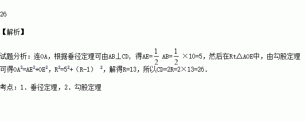 于E,如果CE = 1,AB = 10,那么直径CD的长为 .”