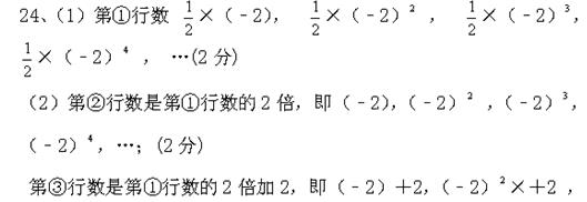 (3)设第①行的第n个数为x,则第②、③行的第n个数分别为2x,2x+2,依题意,可得x+2x+﹙2x+2﹚=﹣1278 解得x=﹣256 , 所以这3个数分别是﹣256、﹣512、﹣510(4分)