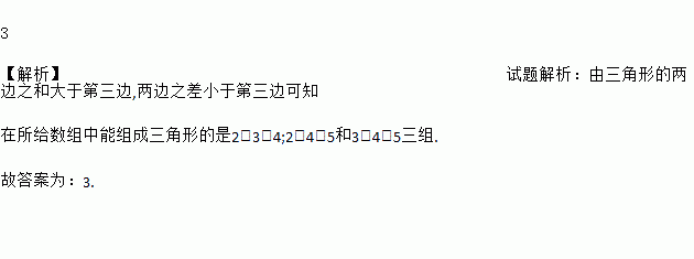 五条线段的长分别为1,2,3,4,5,以其中任意三条线段为边长可以________个三角形.