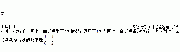 【解析】试题分析:根据题意可得,掷一次骰子,向上一面的点数有6种情况,其中有3种为向上一面的点数为偶数,所以朝上一面的点数为偶数的概率是.