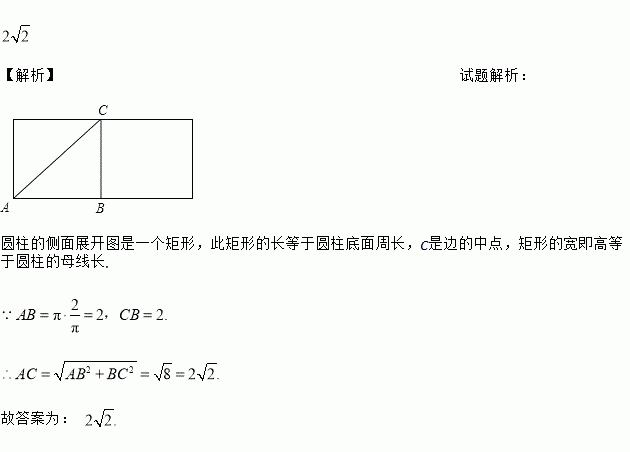 如图所示的圆柱体中底面圆的半径是,高为2,若一只小虫从A点出发沿着圆柱体的侧面爬行到C点,则小虫爬行的最短路程是______.(结果保留根号).