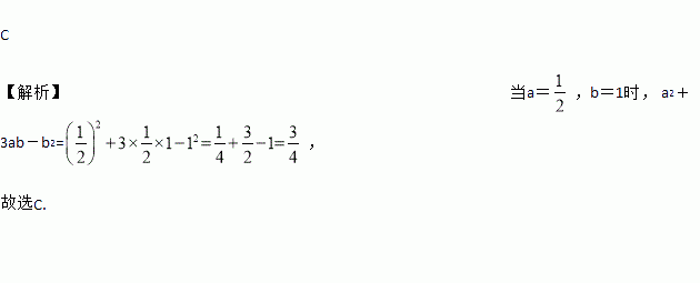 当a=,b=1时,代数式a2+3ab-b2的值为( )