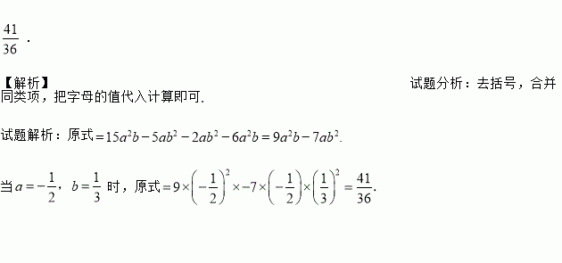 先化简再求值:5(3a2b﹣ab2)﹣2(ab2+3a2b),其中a=﹣,b=.