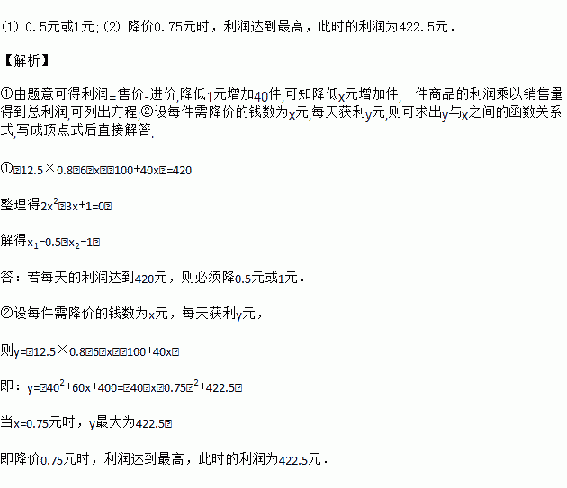 ①若每天的利润达到420元,则必须降多少元?