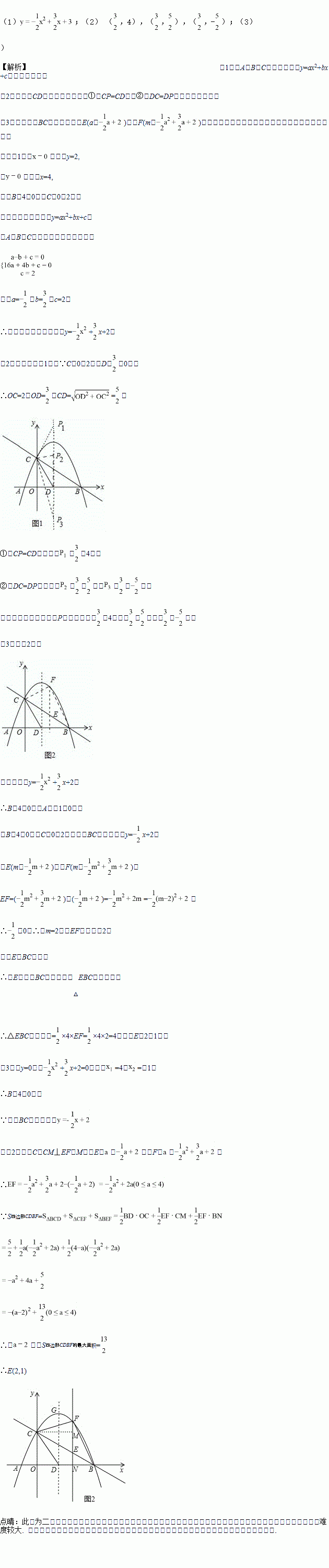 (3)点E是线段BC上的一个动点,过点E作x轴的垂线与抛物线相交于点F,当点E运动到什么位置时,四边形CDBF的面积最大?求出四边形CDBF的最大面积及此时E点的坐标.