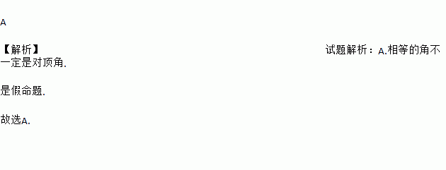 A. 相等的角是对顶角