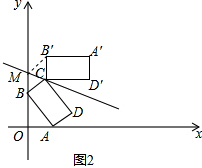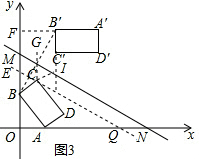 ②过B′作B′F⊥y轴于点F,设B′F=a,则BF=2a,设BM=B′M=b,则MF=2a-b,在直角△B′FM中利用勾股定理求得a和b的比值,MF和B′F即可利用m表示出来,A′和C′坐标即可求得,代入直线y=-x+43求得m的值,从而确定m的范围.