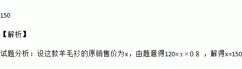 一商场对某款羊毛衫进行换季打折销售,若这款羊毛衫每件按原价的8折销售,售价为120元,则这款羊毛衫的原销售价为 元.