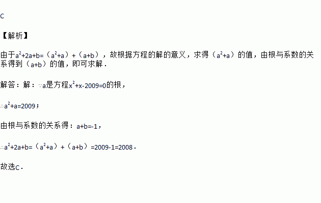 设a,b是方程x2+x-2009=0的两个实数根,则a2+2a+b的值为( )
