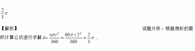 圆心角是60°且半径为2的扇形的面积为 (结果保留π)。