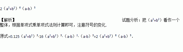 计算:0.125(a2+b2)3(a-b)2·16(-a2-b2)3(b-a)3.