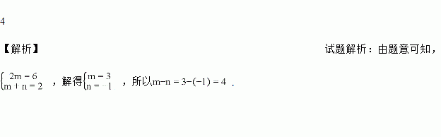 已知4x2mym+n与-3x6y2是同类项,则m-n=________