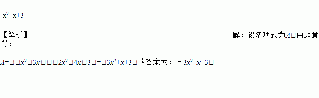 -x2+x+3 【解析】【解析】 设多项式为A.由题意得: A=(﹣x2﹣3x)﹣(2x2﹣4x﹣3)=﹣3x2+x+3.故答案为:﹣3x2+x+3.