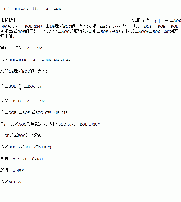 (1)若∠AOC=46°,求∠DOE的度数;