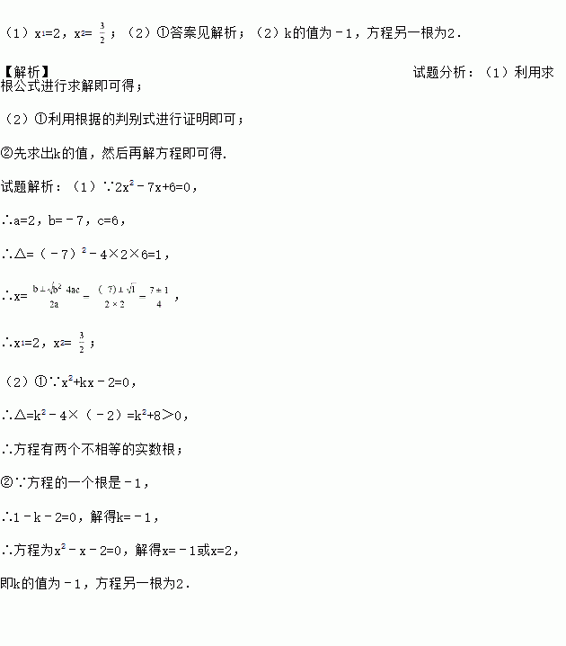 (1)解方程:2x2﹣7x+6=0;